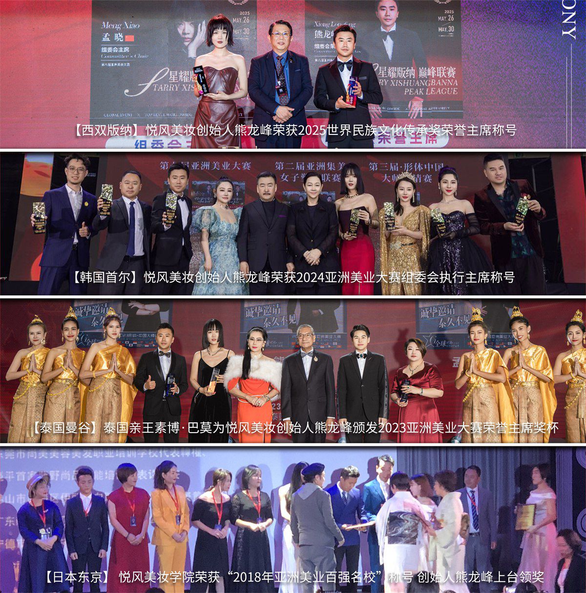 悦风美妆自2012年10月在北京创立以来,经过十余年的励精图治,从默默无闻发展成行业标杆,承载着一代又一代悦风人的不懈奋斗与青春梦想……2016年5月,悦风商标正式获国家工商行政管理总局商标局签发注册成功。2017年10月,悦风美妆学院荣获“亚洲美业十佳名校”荣誉称号。2018年10月,荣获第二届亚洲美业大赛“亚洲百强名校”荣誉称号;2021年荣获中国青年形象设计师技能大赛“十佳培训机构”称号;2025年荣获世界民族文化传承颁奖盛典“全球美业教育受欢迎品牌奖”等。